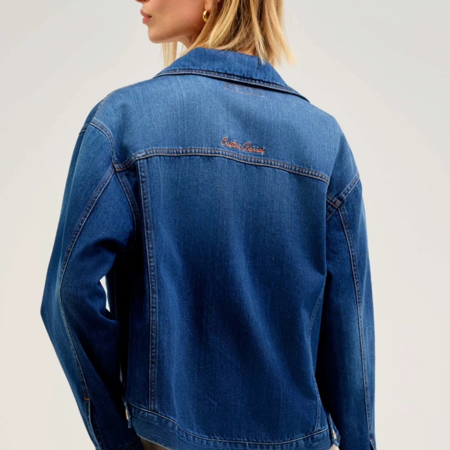 Această jachetă reinterpretată combină stilul clasic denim cu detaliile sofisticate specifice brandului portughez CRISTINA BARROS.