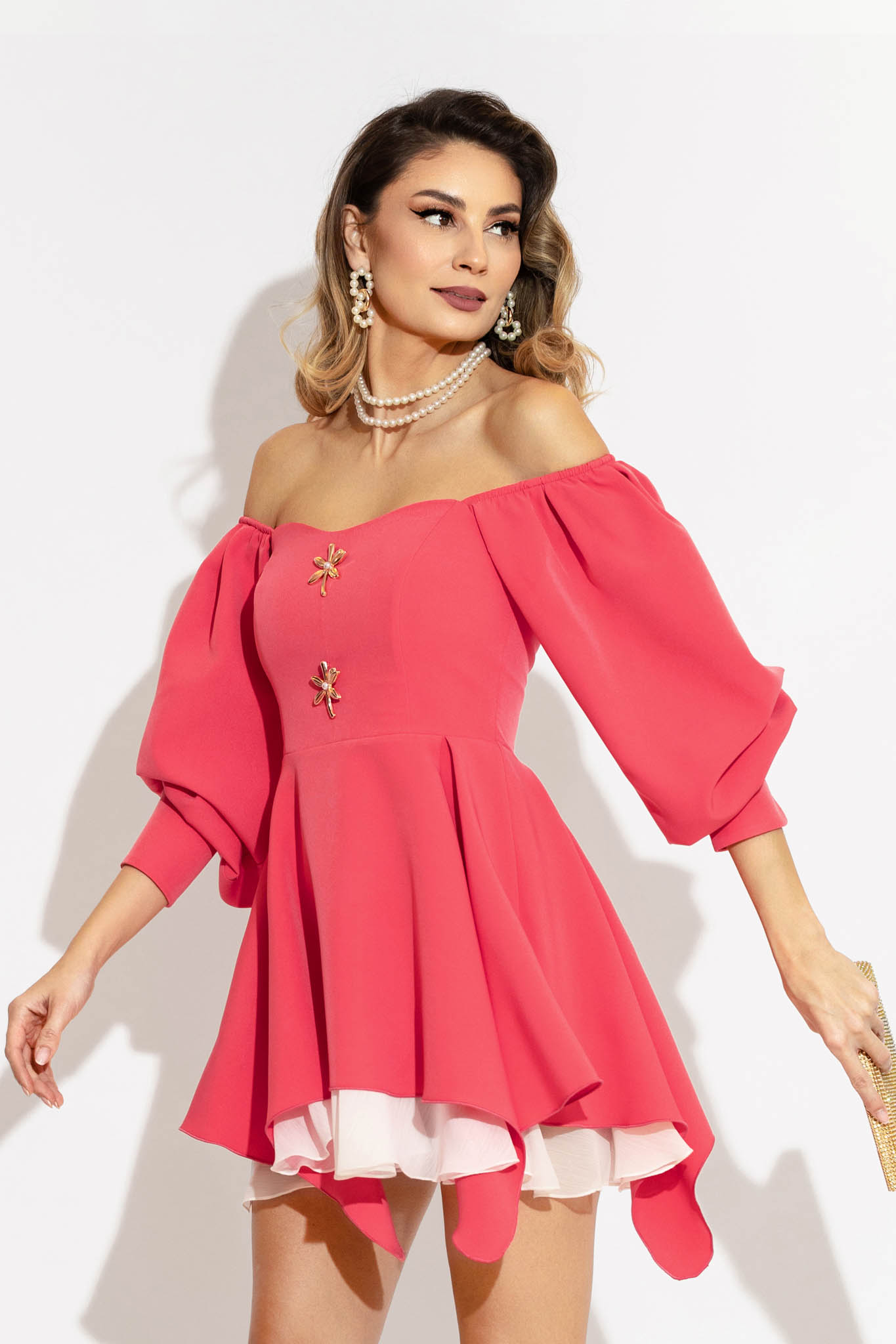 Rochie mini în nuanțe de corai